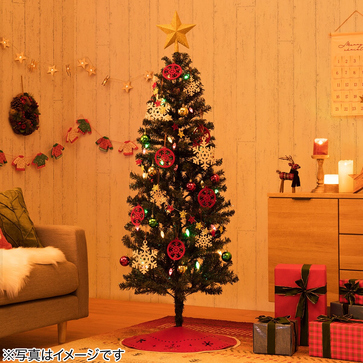 150㎝クリスマスツリーオーナメントセット red×green 5,700 円(税別) ニトリネット限定セット150㎝のツリーとオーナメントのセットです。.